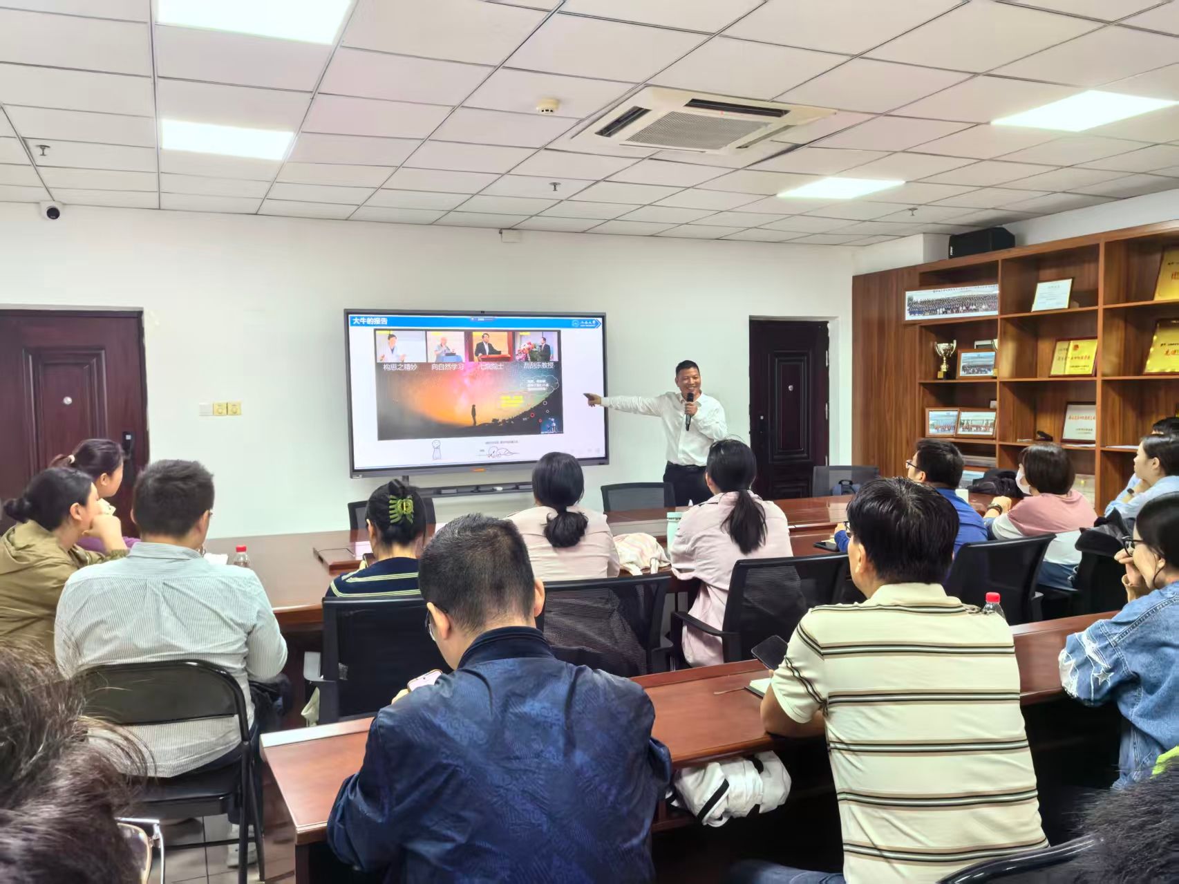 池振国教授以“国家自然科学基金申请书撰写体会”和“实验室研究进展背后的故事”为题,结合自身成功申报多项国家自然科学基金(重点项目1项、面上项目7项)积累的丰富经验,系统讲解了基金申请书的撰写要点与策略,并分享了在光电功能材料领域科研探索的生动故事,为在座师生提供了宝贵的学术指导与启发。