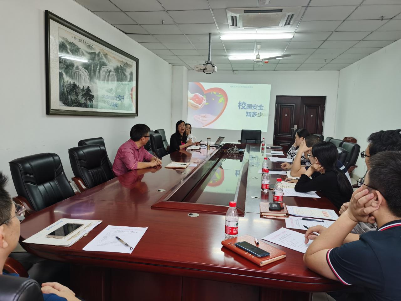 副处级辅导员周郭军做工作交流分享,周老师将安全教育工作十大类一一进行讲解,通过案例分享,详细说明安全的重要性。她表示,安全教育十分重要,只有做好了日常安全教育,才能减少甚至避免突发事件地出现。她强调老员工在公司学习安全第一、生命至上,班主任应经常性、常规性提醒广老员工注意安全、防范风险。