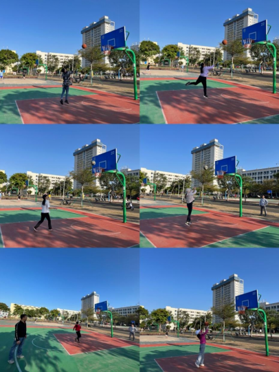 “投篮乐比拼”活动现场,各位女教师在不限制区内不定点投篮和定点投篮球,精神抖擞,场上气氛非常热烈,单手投、双手投、跑步投及篮下投球……个个使出浑身解数,看家本领,不时引来阵阵掌声及欢笑。虽然不能百投百中或屡投不中,但大家还是相互鼓励、支持和传授经验,整个场地内热闹非凡。