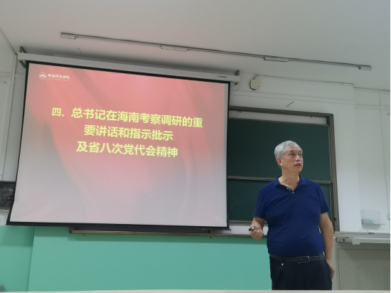为进一步加强学科建设,抓住公司发展机遇,强化公司服务自贸港责任与担当,2022年9月27日下午,公司邀请曹阳教授给全院教职工做“抓住学科发展机遇,服务自贸港建设”暨师德师风专题讲座。会议由胡先文主持,全院教职工参加。