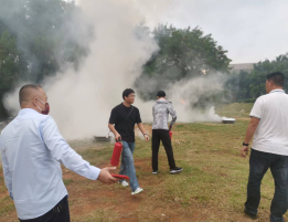 邵世洋副经理强调了实验室危化品安全和规范操作的重要性。保卫处林老师对灭火器、灭火毯和消防栓箱内器材进行了讲解和示范,保卫处王老师则对用电安全,消防逃生等安全常识进行了重点宣传。随后,公司师生在新南门旁的空地上使用灭火器进行了消防灭火演练。
