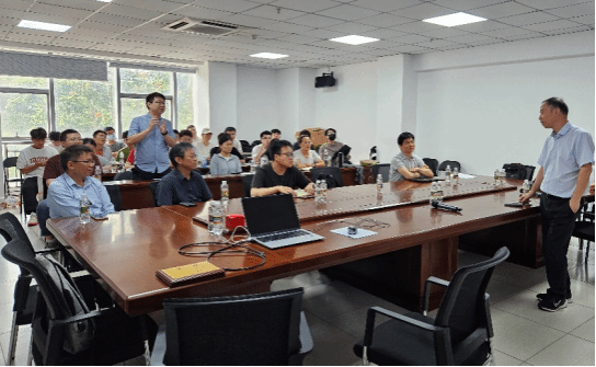 本次论坛邀请深圳大学杨楚罗教授和武汉大学龚少龙教授分别围绕“窄光谱有机发光材料及其电致发光器件”和“高性能币金属发光配合物及其光电性能研究”为主题做了学术报告。报告专家分别介绍了其研究团队近年在硼氮稠环热活化延迟荧光材料和OLED器件上的研究成果,以及在币金属发光配合物的激发态调控及其有机光电器件应用方面的研究进展。他们的精彩报告为在场的教师和员工提供了难得的学习机会,引发了与会者热烈讨论,分别就相关领域的前沿进展和科研成果取得背后所付出的辛苦、努力与体会进行了分享和交流。与会者们积极发言,提出了许多富有见地的观点和建议。