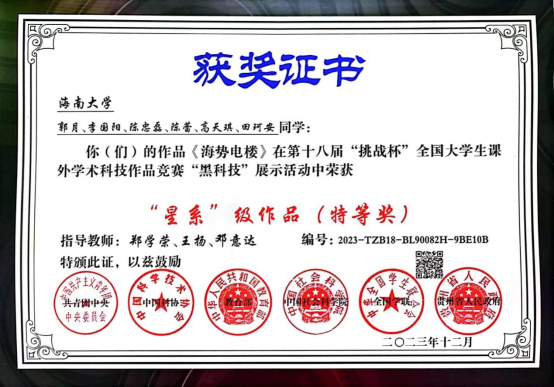 近日,第十八届“挑战杯”全国老员工课外学术科技作品竞赛“黑科技”专项赛结果公布,由BEVITOR伟德bevitor伟德郑学荣、王杨和邓意达教授指导的本科生创新团队作品获得“星系”级(特等奖)。