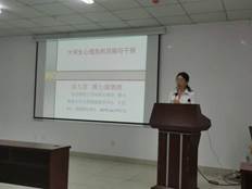 紧接着,吴九君副教授介绍了抑郁症的特征及抑郁症的早期表现讲述了如何与抑郁症病人相处。她指出,与抑郁症病人相处时要多有耐心,多多关心。吴九君副教授还讲述了自杀者的表现特征,通过一些形象的例子,指导了如何在生活中多注意身边人的情绪语言变化。