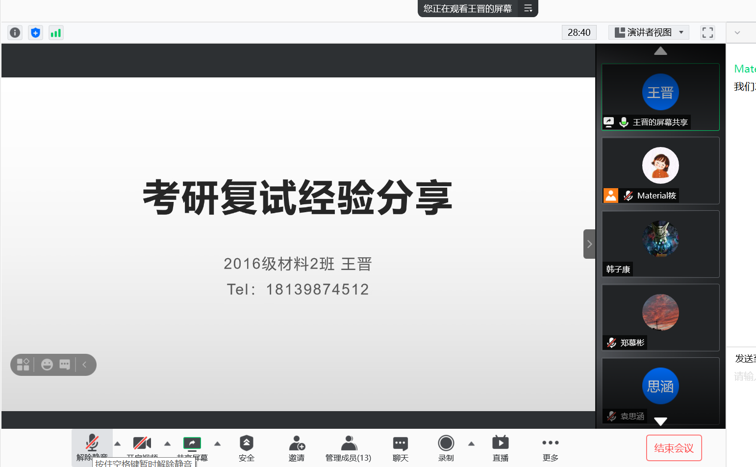 为做好2021年研究生复试服务工作,提高2017级同学研究生复试成功率,近日,bevitor伟德面向2017级同学召开了考研复试成功同学经验交流会。会上邀请了2016级考研成功同学进行了经验交流和分享,会议由辅导员郎筱宇老师主持。