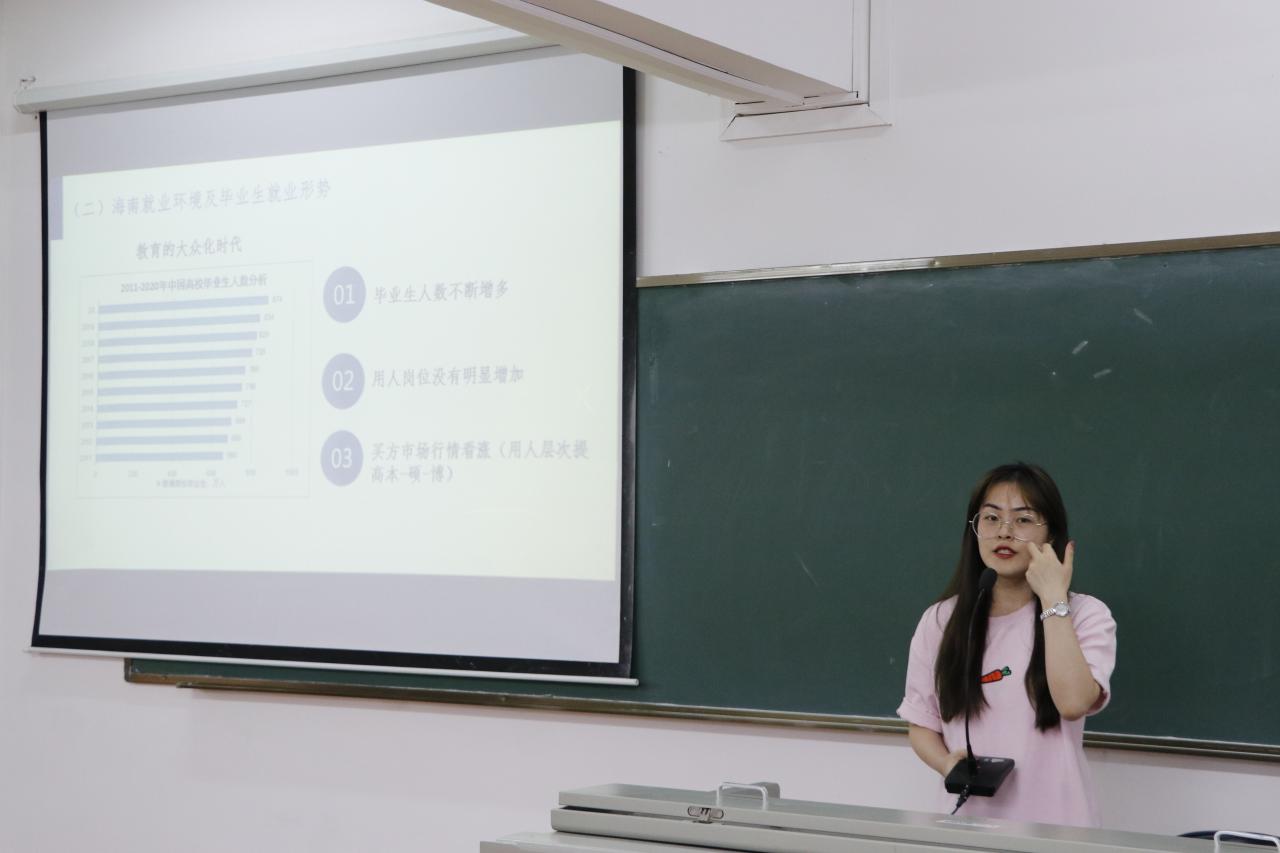 杨馥娴老师做主题为“知己知彼 百战不殆——为什么要做好职业生涯规划”主题分享。她重点分析了全年级2020-2021第一学期的学业总体情况,让全体同学对自身所处位置有了全面了解。她强调,生涯规划是成长的必需品,了解自己、发现自己、规划自己才能让老员工涯更有意义、不留遗憾。她通过举例说明,讲解了如何去思考和进行规划。