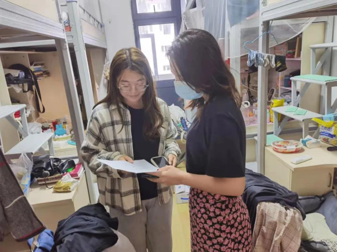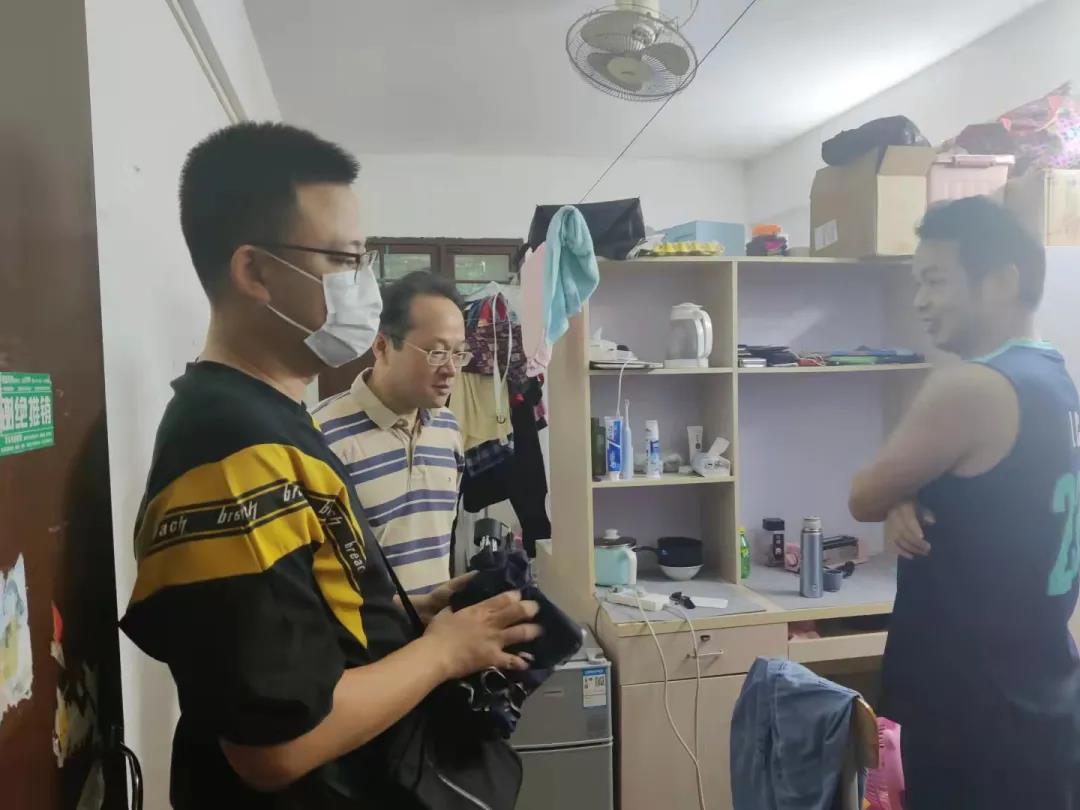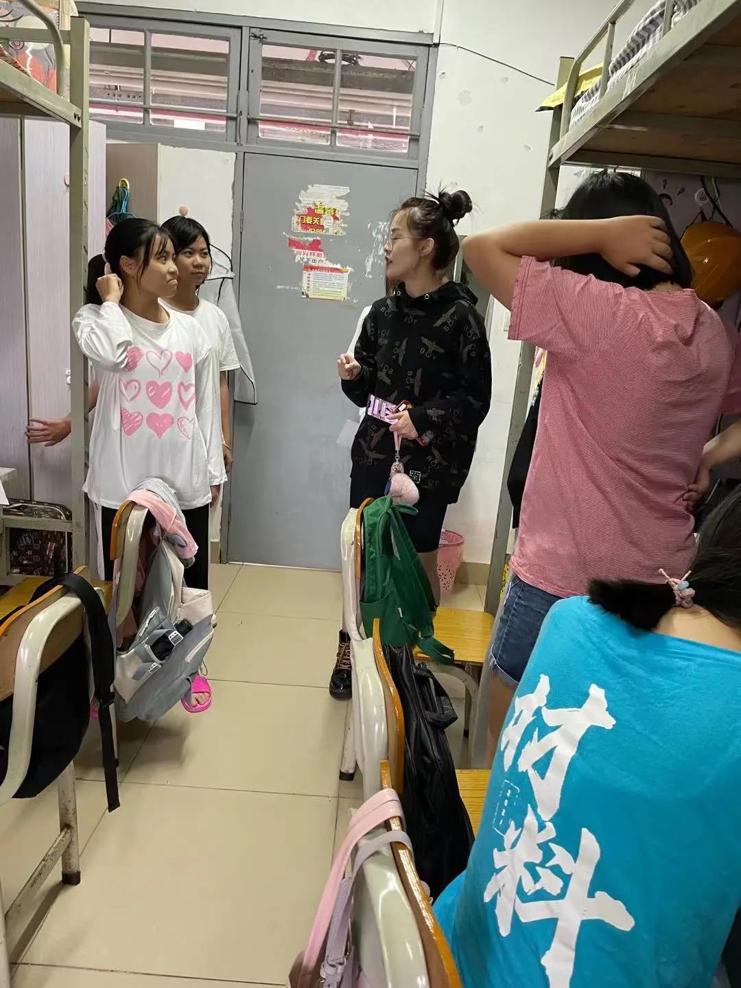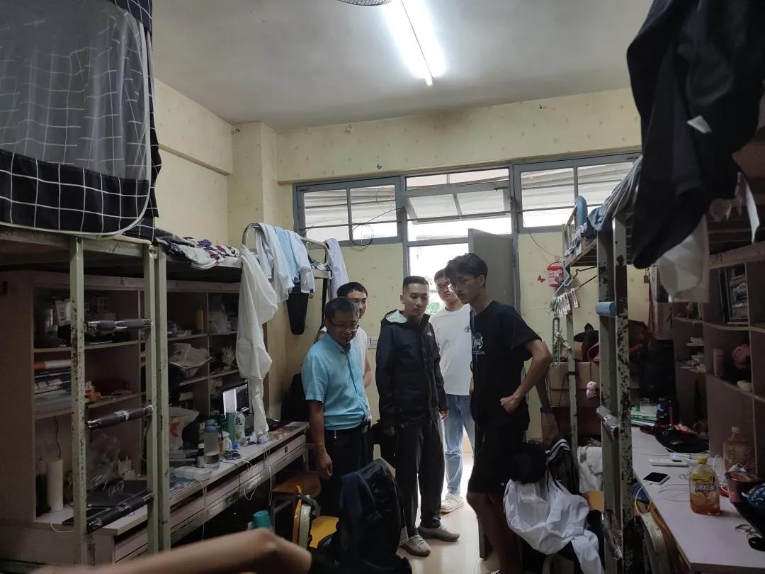 在检查过程中,各位老师走进员工宿舍,亲切慰问宿舍中的同学,就员工目前在日常生活中遇到的困难进行建议和帮扶。强调台风来临之际,切记要保护好自己的个人安全;在宿舍要记得把东西收放好,同时阳台上不要放任何物品,防止被大风吹落;避免外出宿舍,一定要保证自身的安全;面对台风天气大家应该互相帮助,有问题要第一时间找辅导员、班主任。