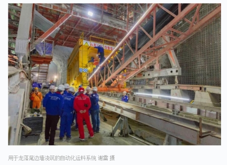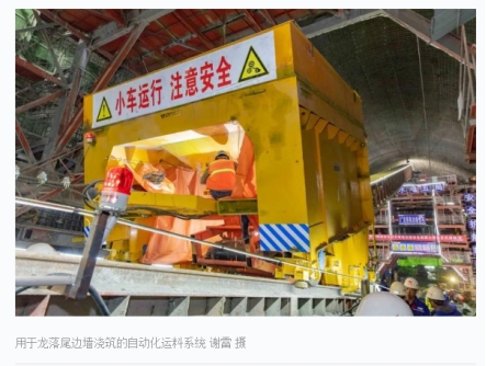 “针对龙落尾段边墙混凝土浇筑的需要,我们自主设计研发了大坡度重载自动化运料系统。”白鹤滩工程建设部泄洪洞项目负责人王孝海介绍说,“有了这套系统,我们只需要按下一个按钮就能将装有常态混凝土的运料小车从下料平台运往钢模台车,实现了一键启动、全程自动控制,并配备四套安全控制装置,保证了常态混凝土运输效率和质量,也确保了运输过程的安全。”