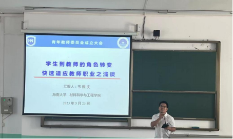 青年教师代表韦雅庆副教授作了题为《员工到教师的角色转变——快速适应教师职业之浅谈》的报告,他从提高“教学”技能小建议,做好“科研”小妙招,以及如何协调工作与家庭生活三个方面,分享了自己入职以来的教师职业发展历程与心得体会,为青年教师快速适应教师岗位提供了宝贵的经验。